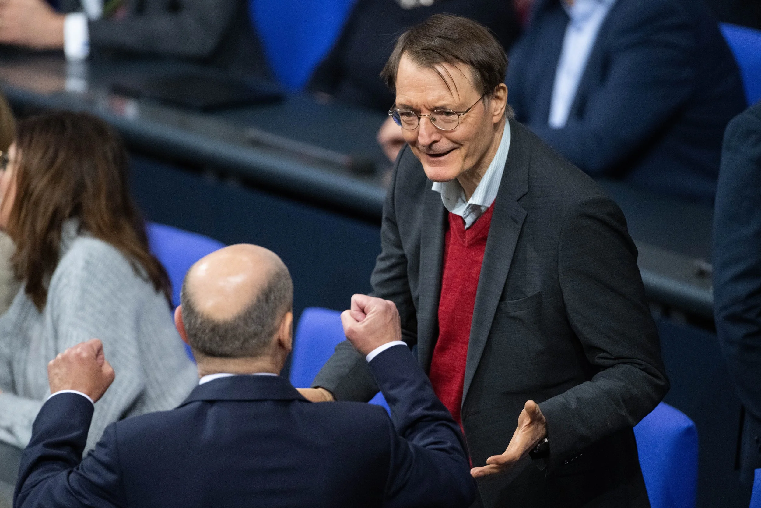 Karl Lauterbach, Bundesminister für Gesundheit, im Bundestag mit Bundeskanzler Olaf Scholz