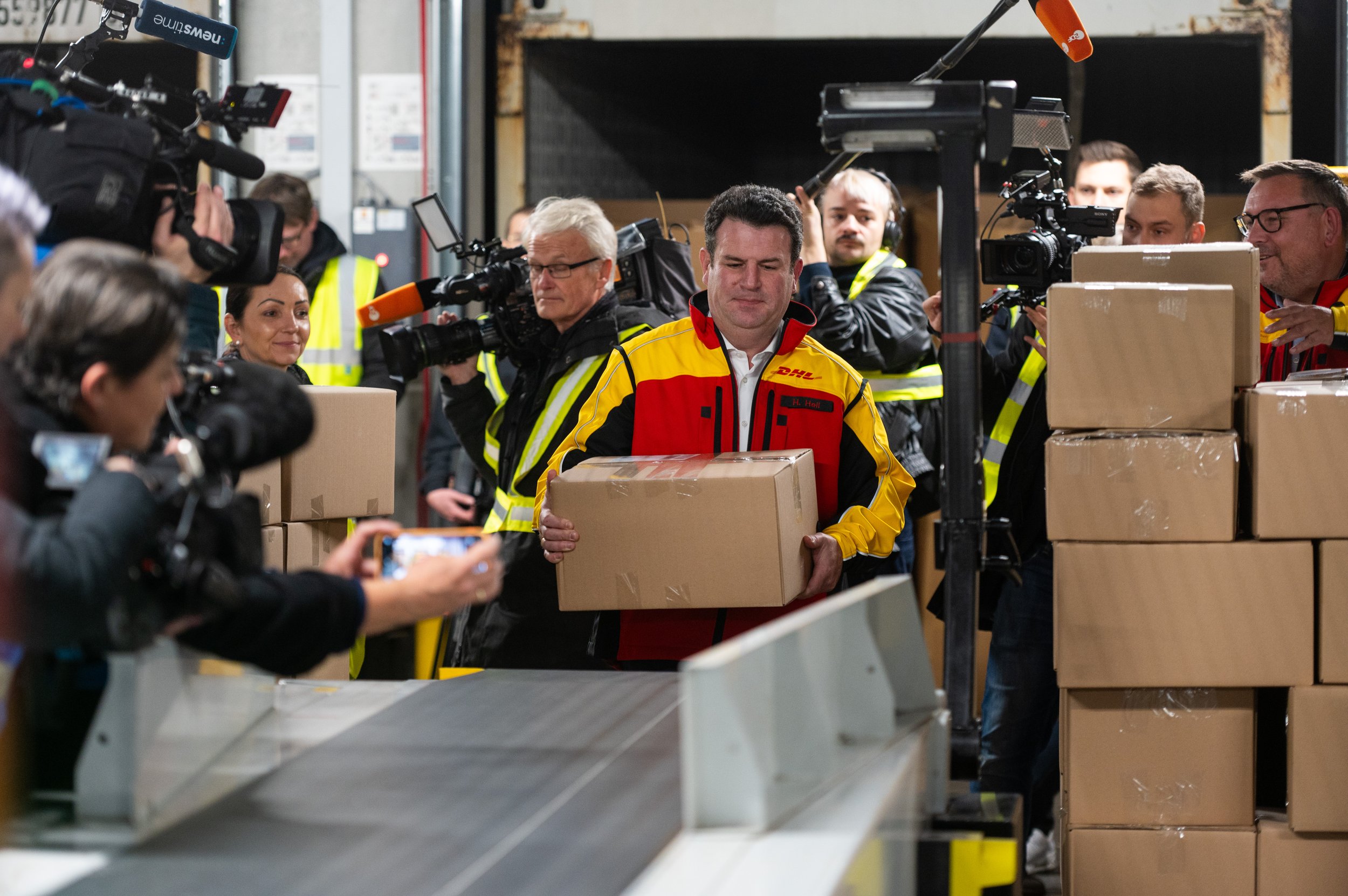 Hubertus Heil bei einem Besuch im DHL-Paketzentrum