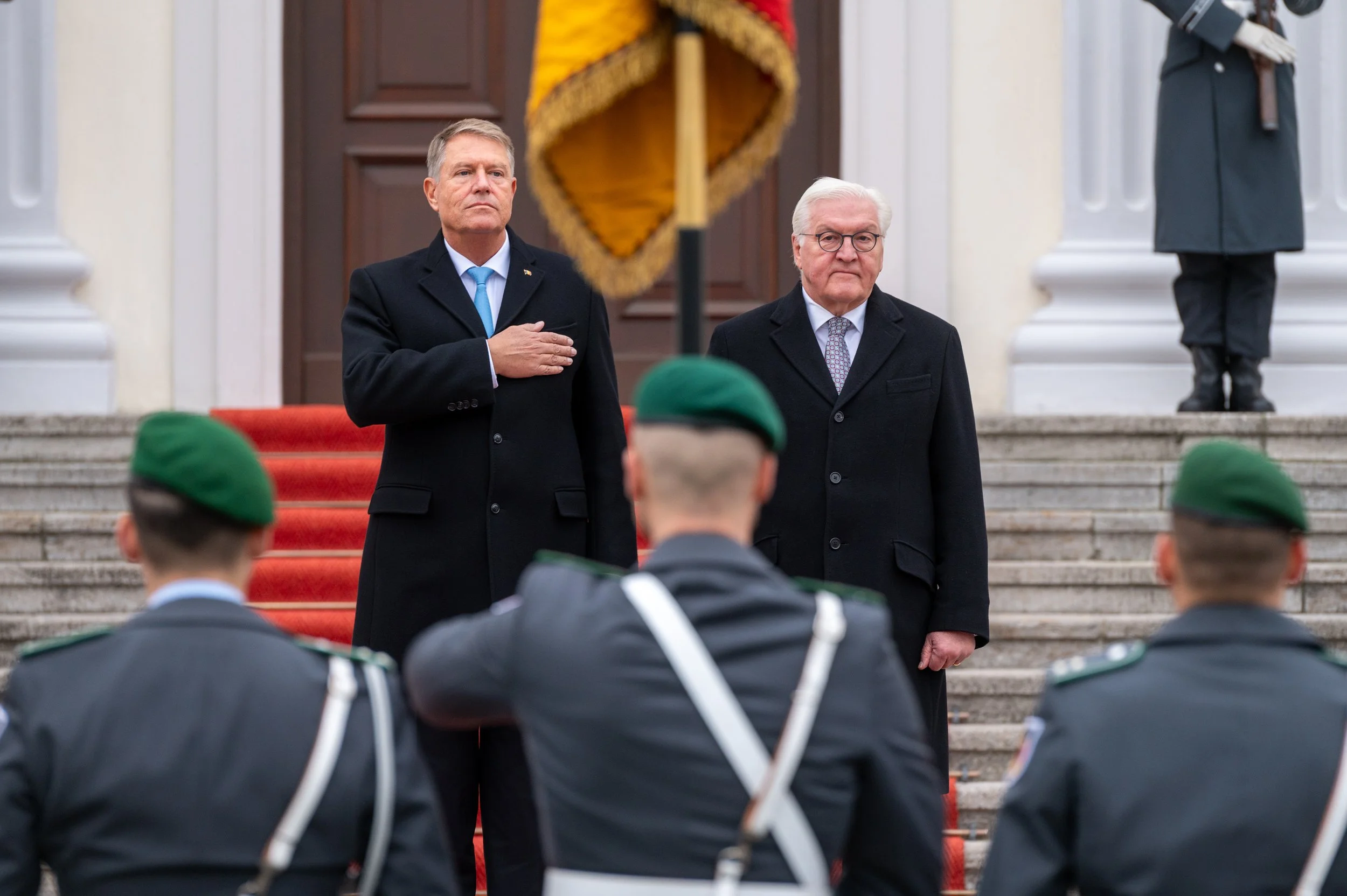 Bundespräsident Frank-Walter Steinmeier empfängt Klaus Iohannis, Präsident von Rumänien, mit militärischen Ehren im Schloss Bellevue.