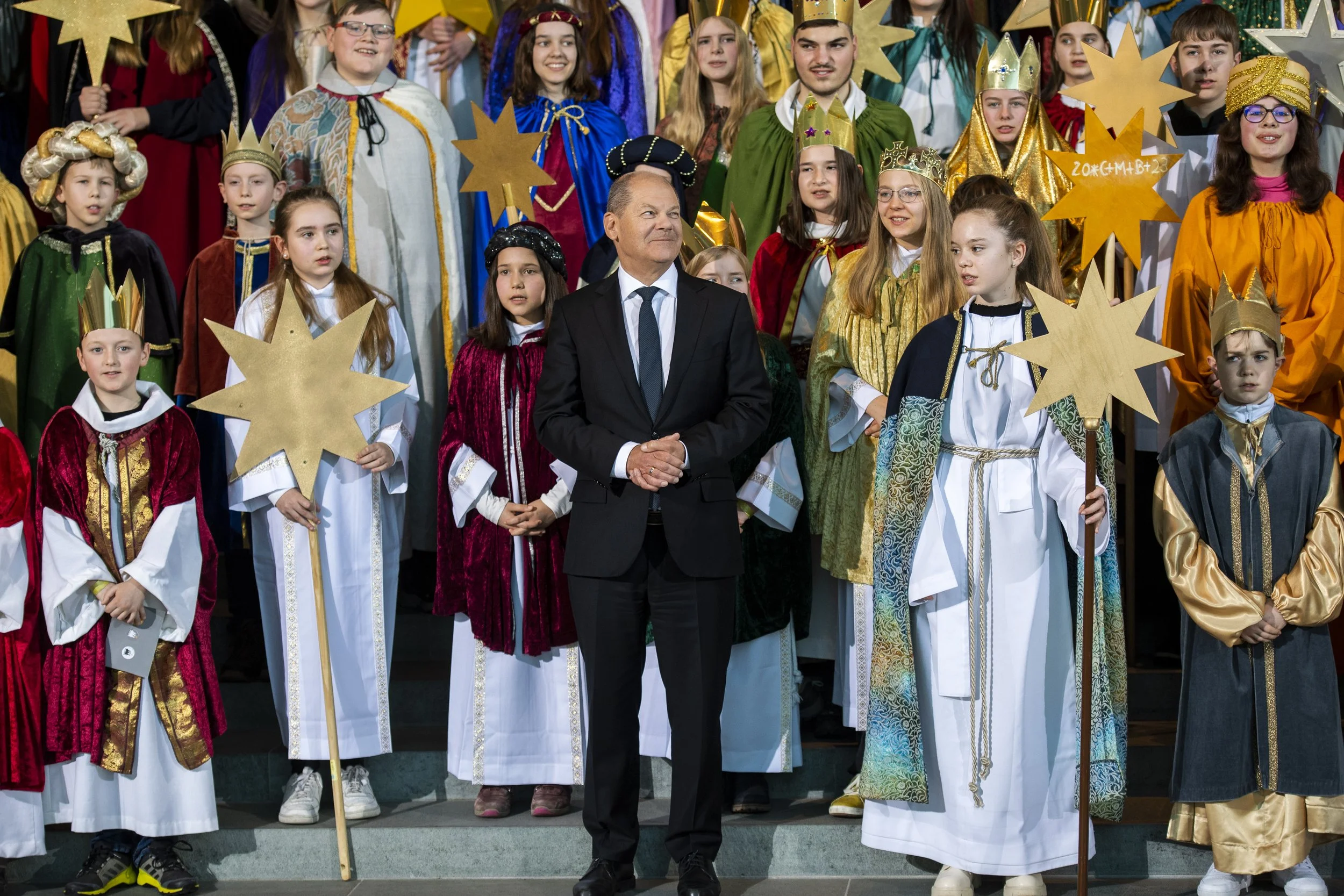 Bundeskanzler Olaf Scholz im Kanzleramt mit Sternsingern