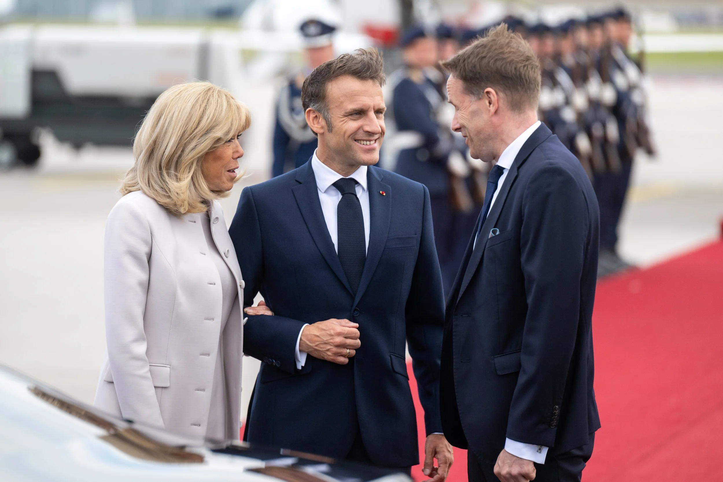 Emmanuel Macron und seine Frau Brigitte Macron werden am Militärischen Teil vom Flughafen BER empfangen.